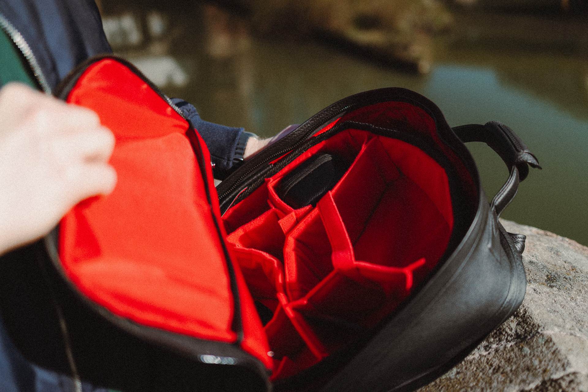 Besonders spannend für Fotografen und Filmemacher ist natürlich das Innenfach. Bei mir finden problemlos Platz:
